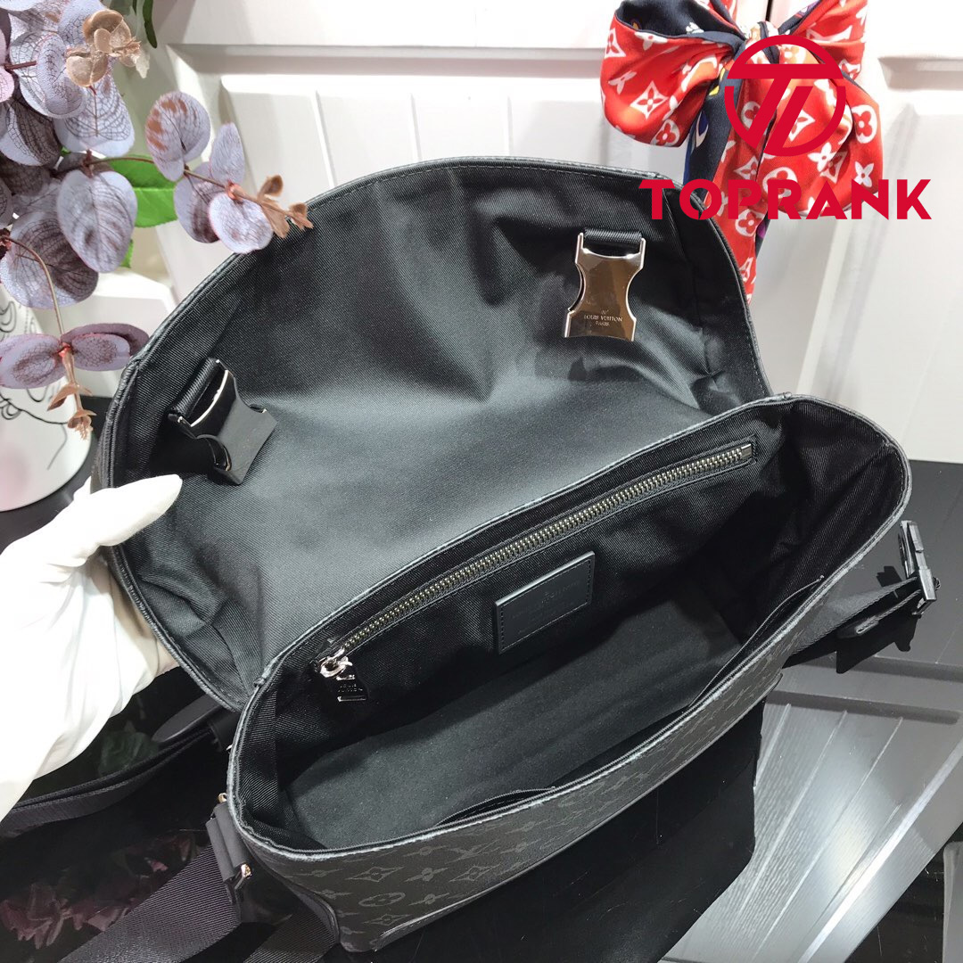 Inspired by the vintage school bag, the Messenger PM Voyager is fashioned in supple Monogram Eclipse canvas, which makes it very comfortable to carry. With two buckles fastener, convenient adjustable shoulder strap, and numerous internal compartments, it is the perfect bag for the urban man on the move.12.6 x 9.1 x 3.5 inches (Length x Height x Width) Monogram Eclipse canvasTextile liningEpi leather & textile trimSilver coloured metallic piecesBuckle fastener closureAdjustable textile shoulder strapExternal flat pocketInternal zipped pocket