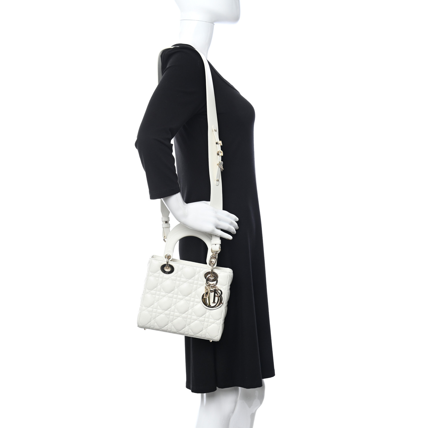 CHRISTIAN DIOR Lambskin Cannage Small My ABCDior Lady Dior White
