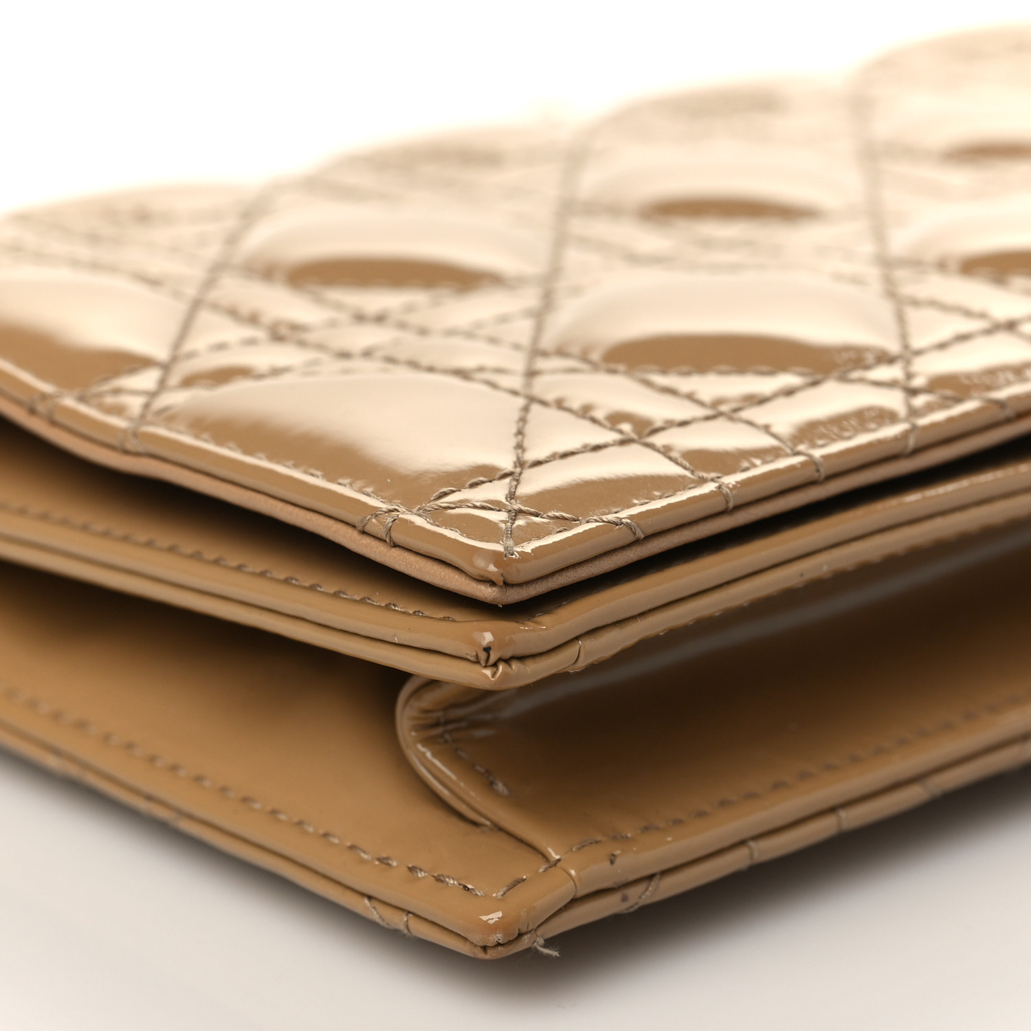 CHRISTIAN DIOR Patent Cannage Lady Dior Convertible Clutch Beige