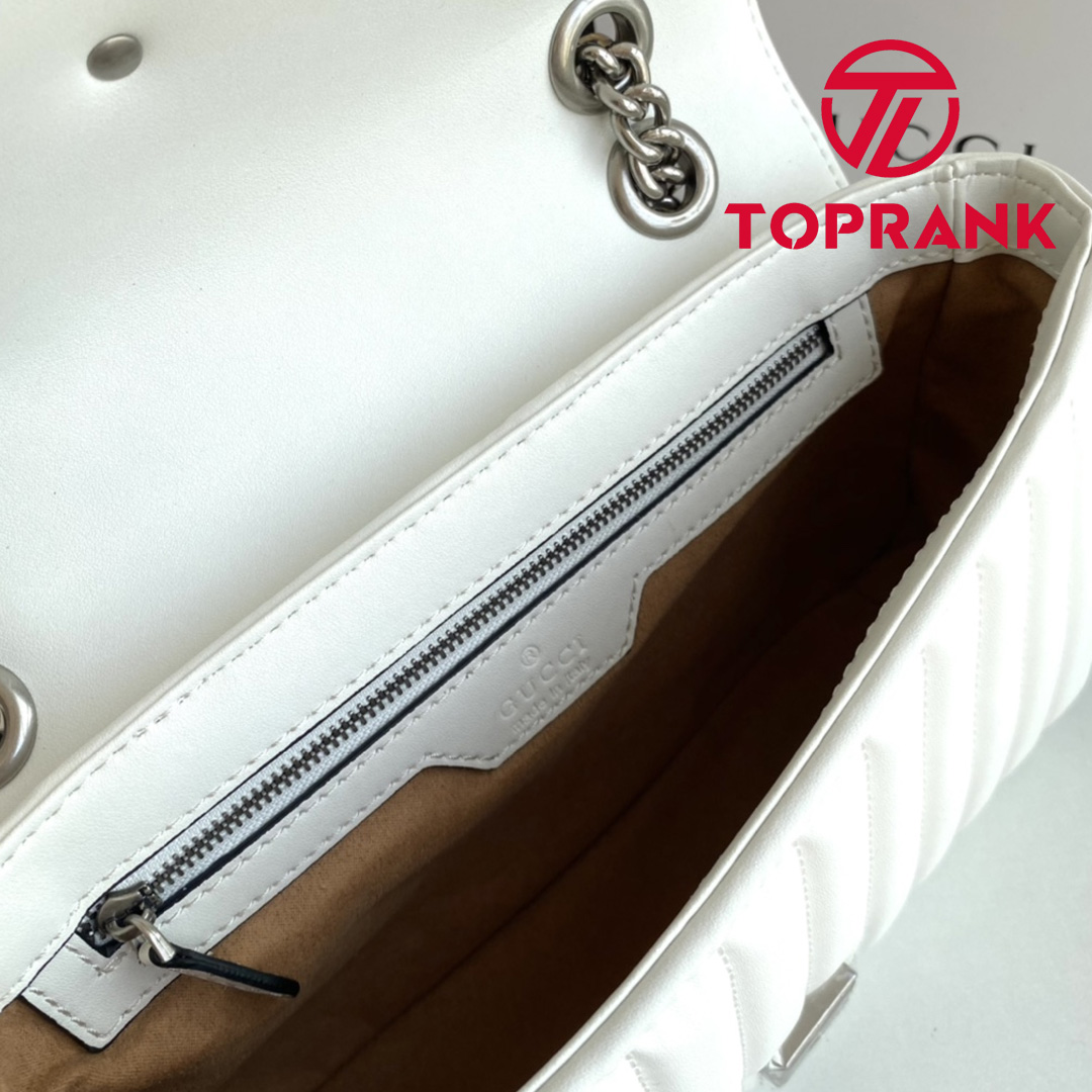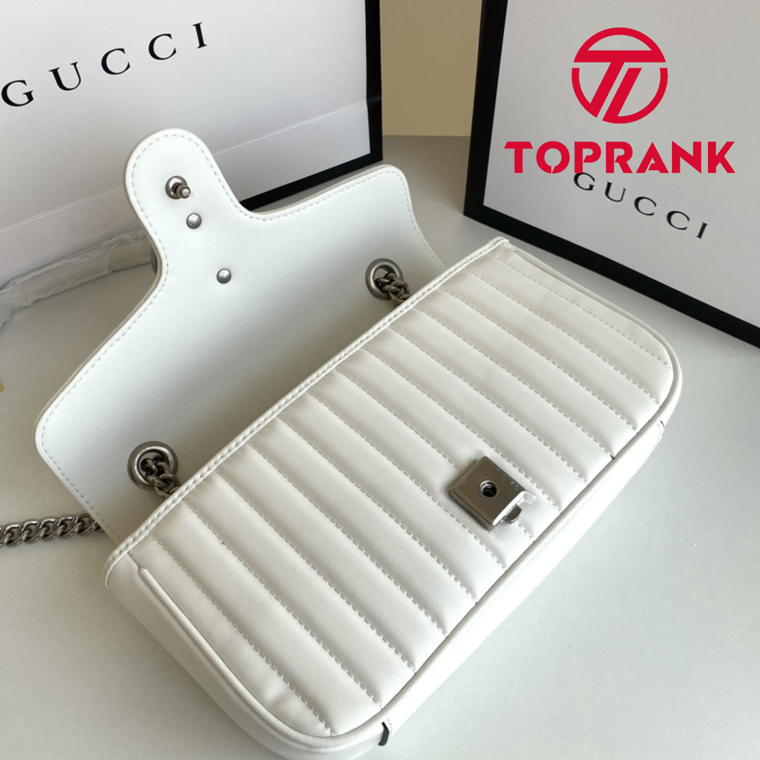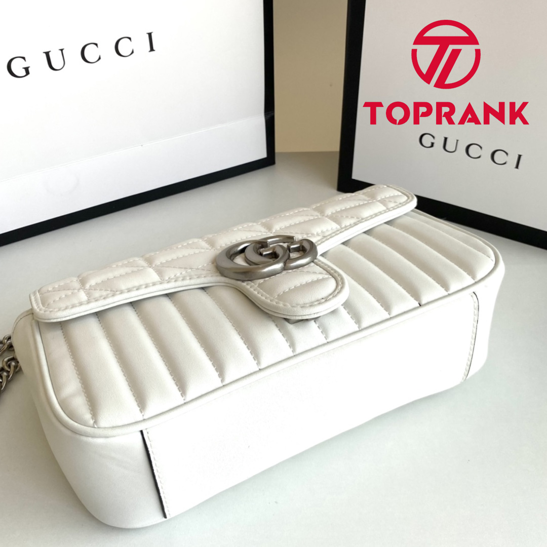The Gucci Aria collection is an exploration of the House's most emblematic codes and symbols. The GG Marmont is synonymous with its matelassé leather and monogram hardware. Here, the mini shoulder bag is reimagined with a new geometric take on its signature finish that combines vertical and diagonal motifs.