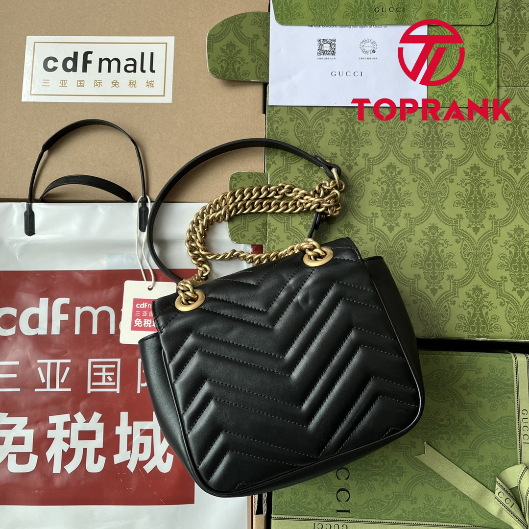 The GG Marmont has become synonymous with the House, thanks to its recognizable matelassé fabric and Double G hardware. Continuously reinvented through the seasons, new shapes are introduced within this signature line, matching Gucci's contemporary vision. Here, it's presented in black leather and further enriched with antique gold-toned details.