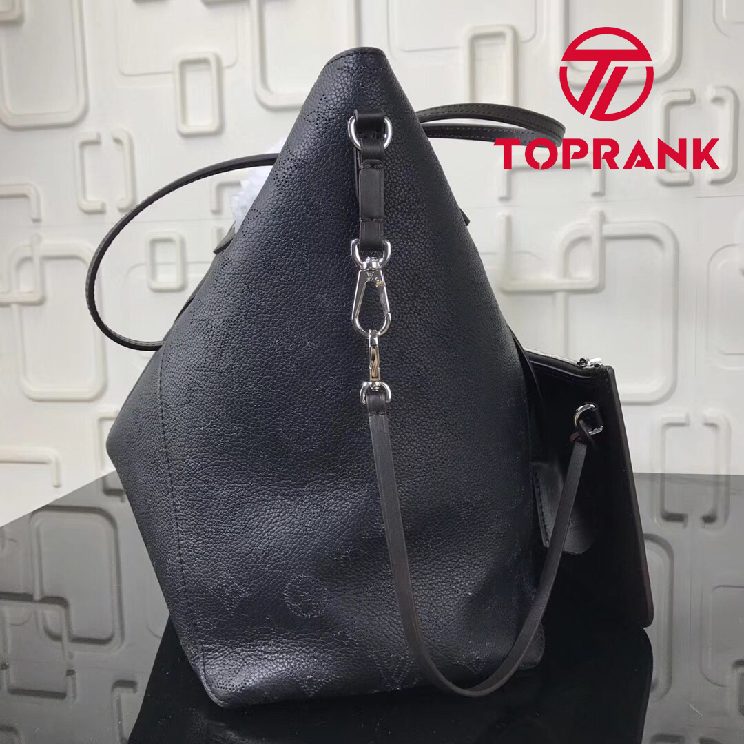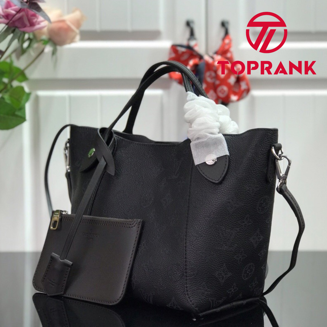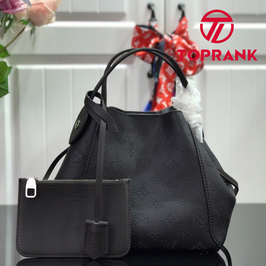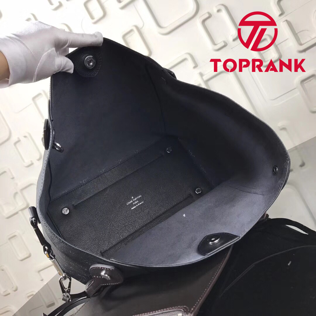 The Hina is two bags in one: gather in the sides on a central snap hook, and the tote transforms into a trendy bucket style. Crafted of perforated calf leather, it is light and comfortable, ideal for everyday wear. The MM model accommodates daily essentials as well as documents and files.