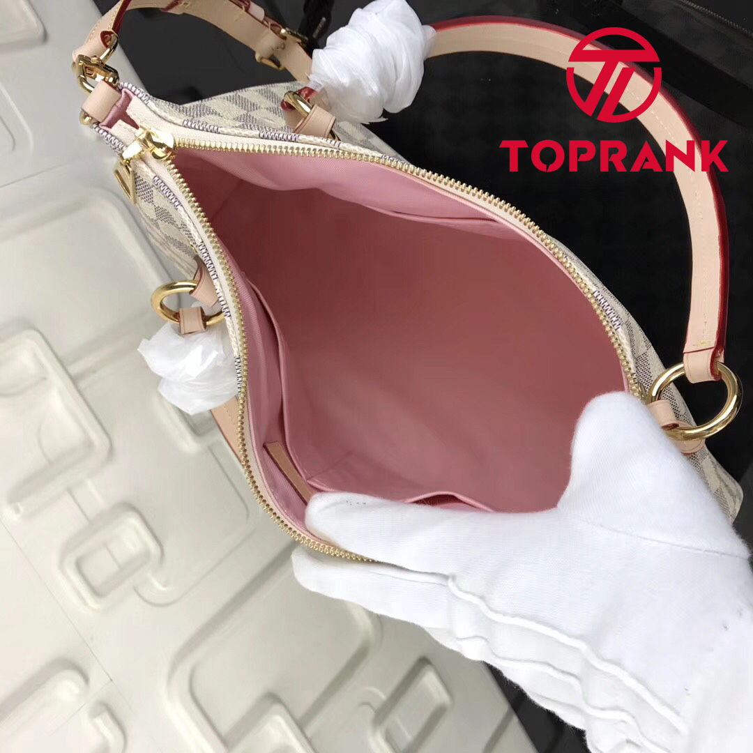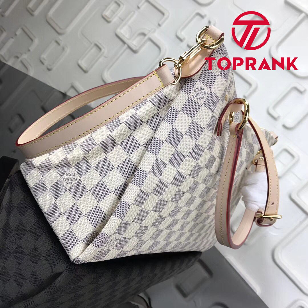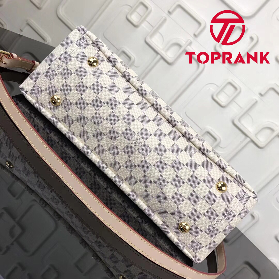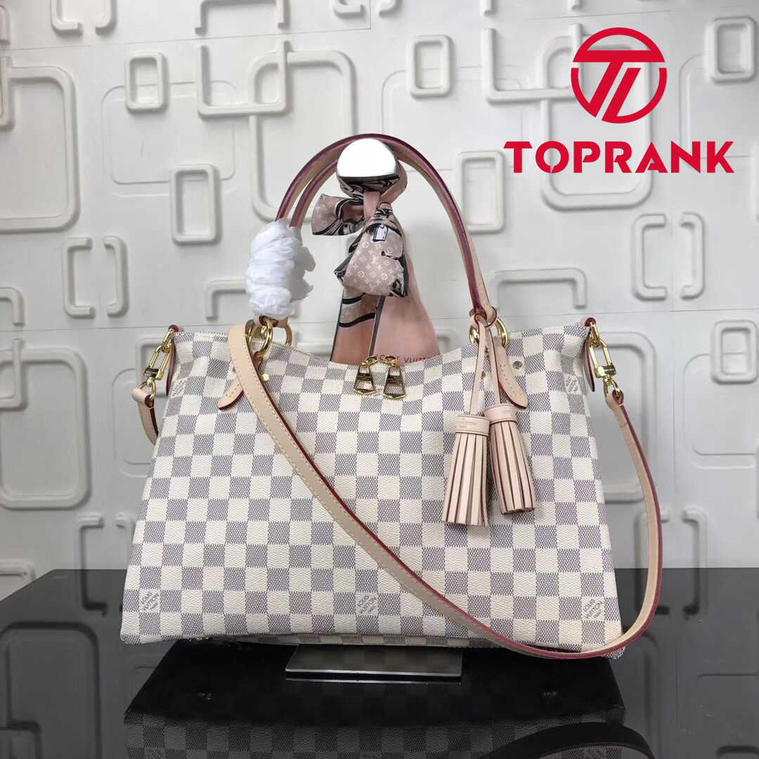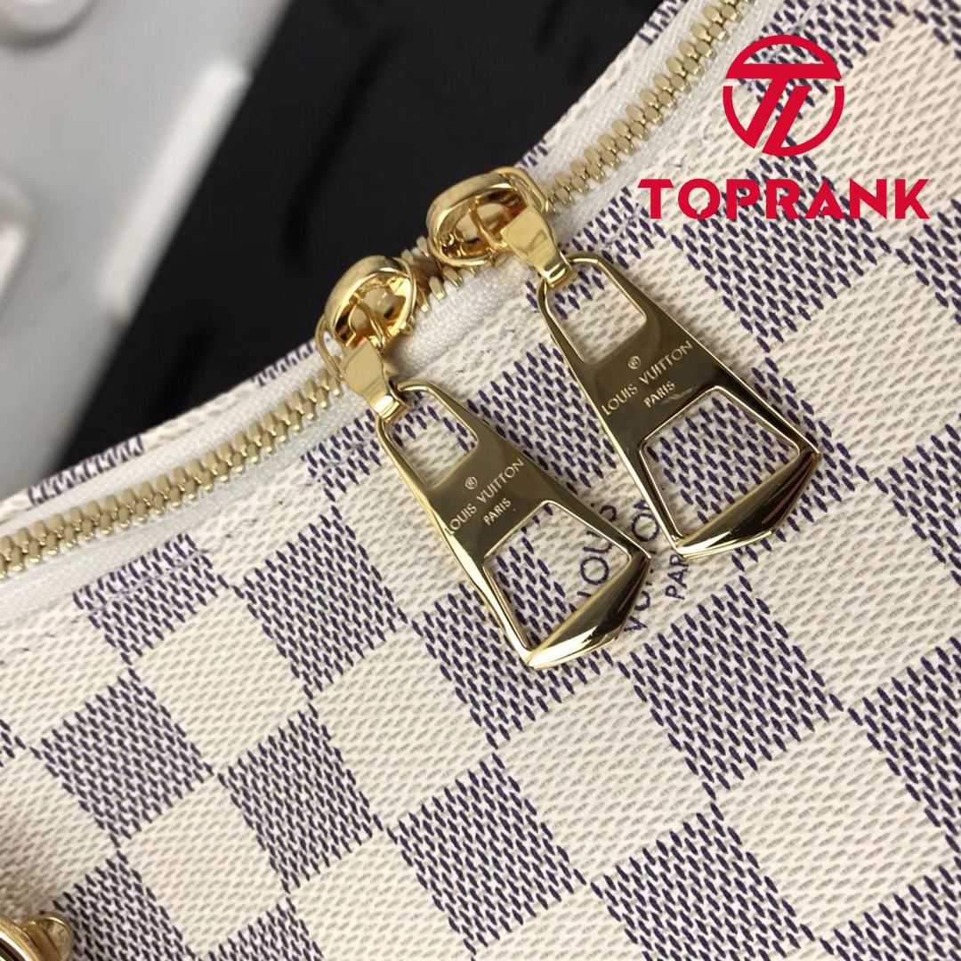 Casual yet elegant Lymington zipped tote in fresh Damier Azur is the perfect beach to city companion.The natural cowhide handles, tassels and trim acquire an authentic patina over time, enhancing the allure of this practical, generously sized model.