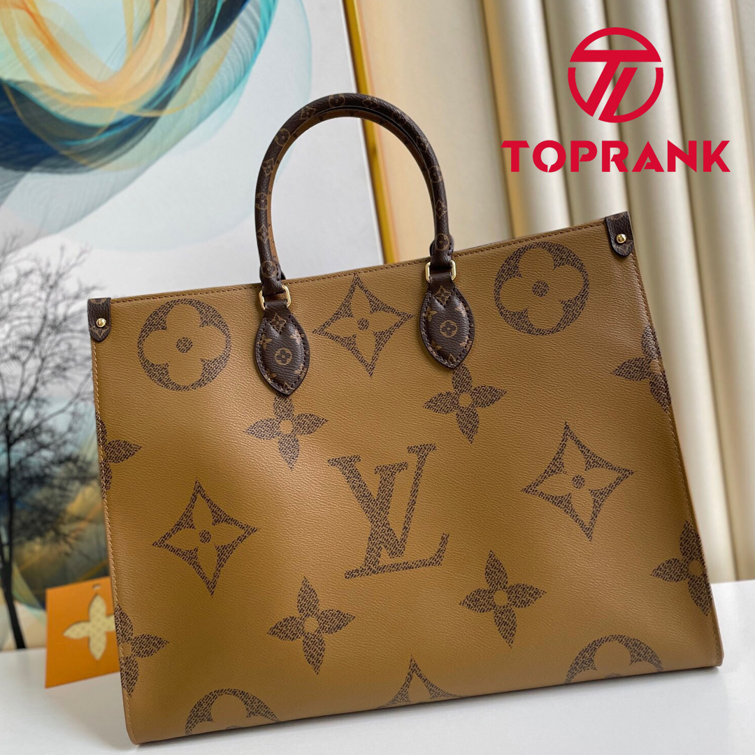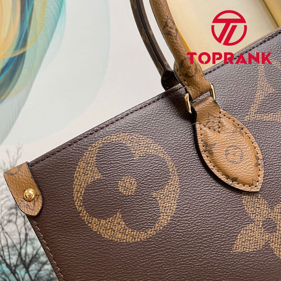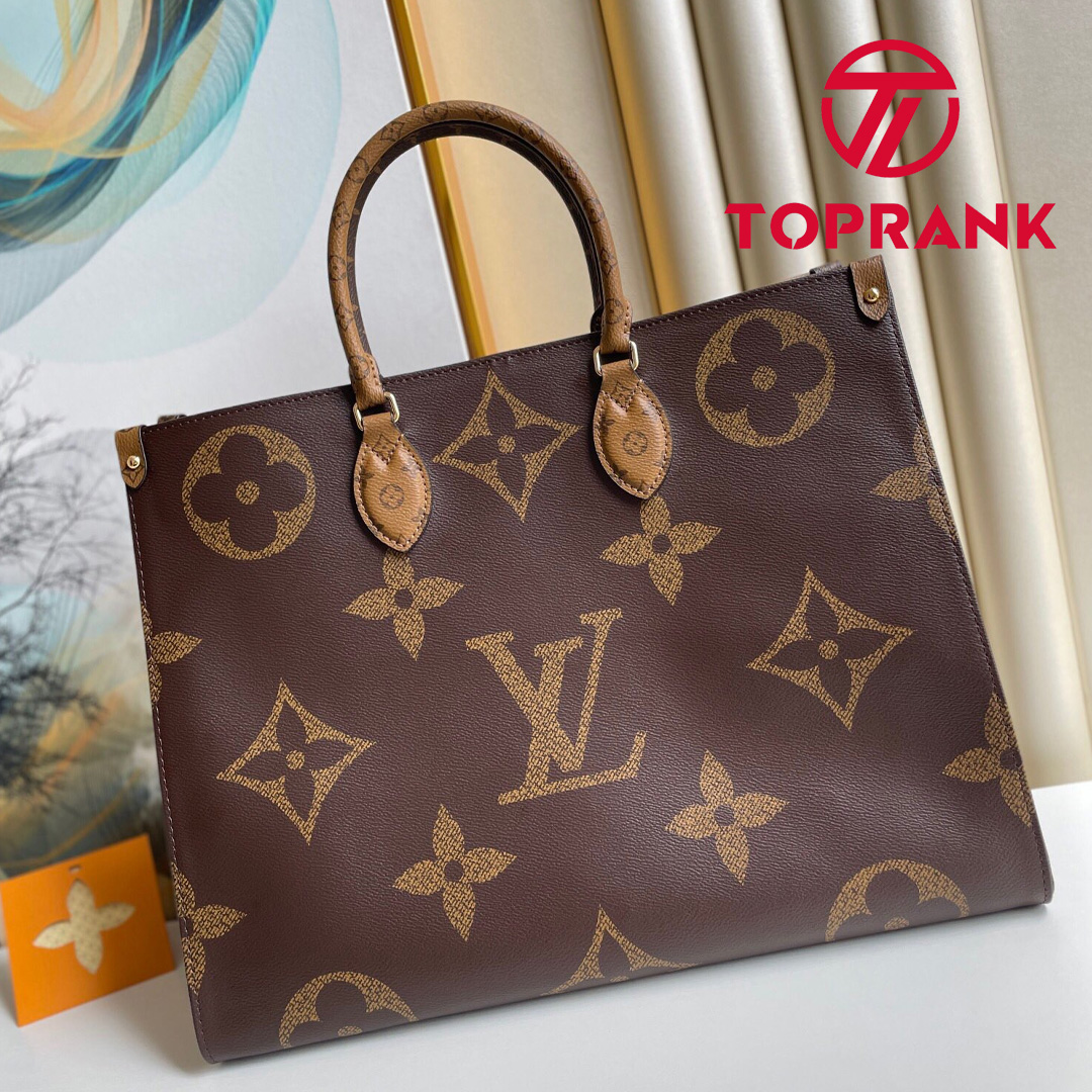 Fashioned from Monogram Giant canvas, the Onthego tote bag is as striking as it is practical. A Monogram Reverse pattern on the sides and handles creates a stylish contrast in color and scale. With its generous capacity, removable shoulder straps, and iconic Toron top handles, this versatile GM model is an ideal bag for everyday wear.