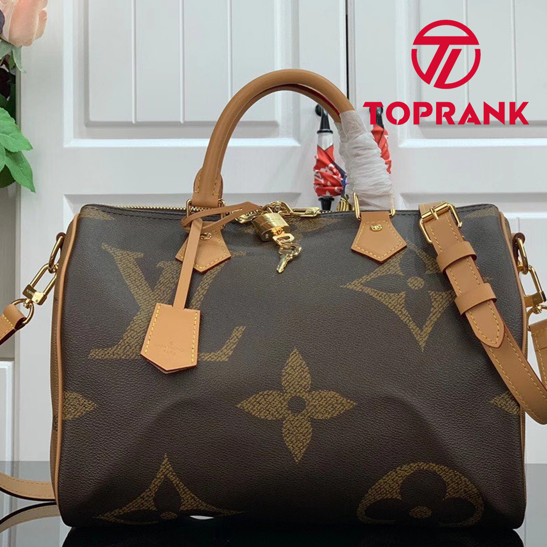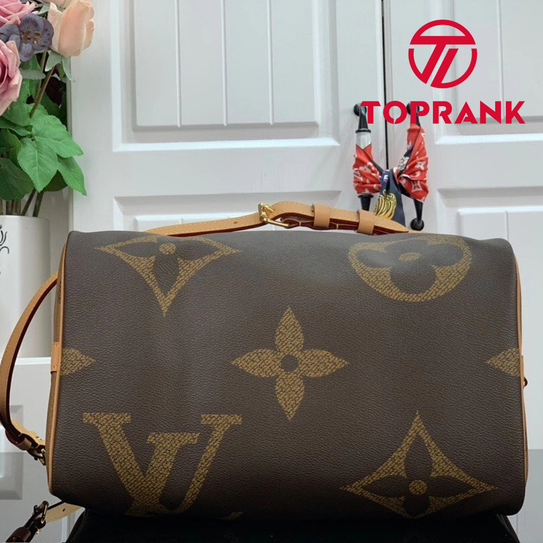 The ever-stylish Speedy handbag shows a new face for Pre-Fall 2019. This model features the super-sized Monogram Giant motif paired with Monogram Reverse, two fresh iterations of the iconic pattern that give it a modern allure. With twin Toron handles and a long strap, it is a versatile bag to carry every day.
