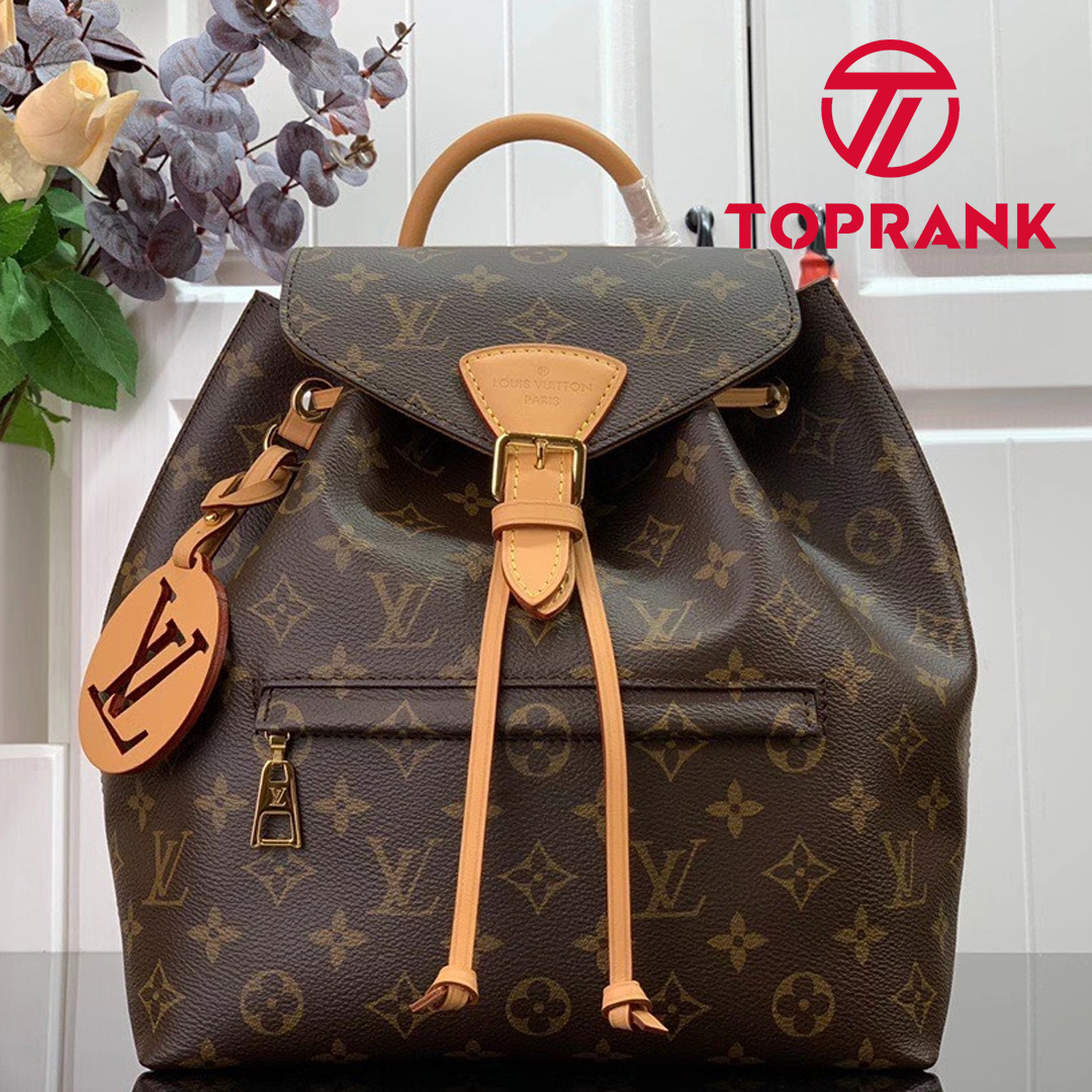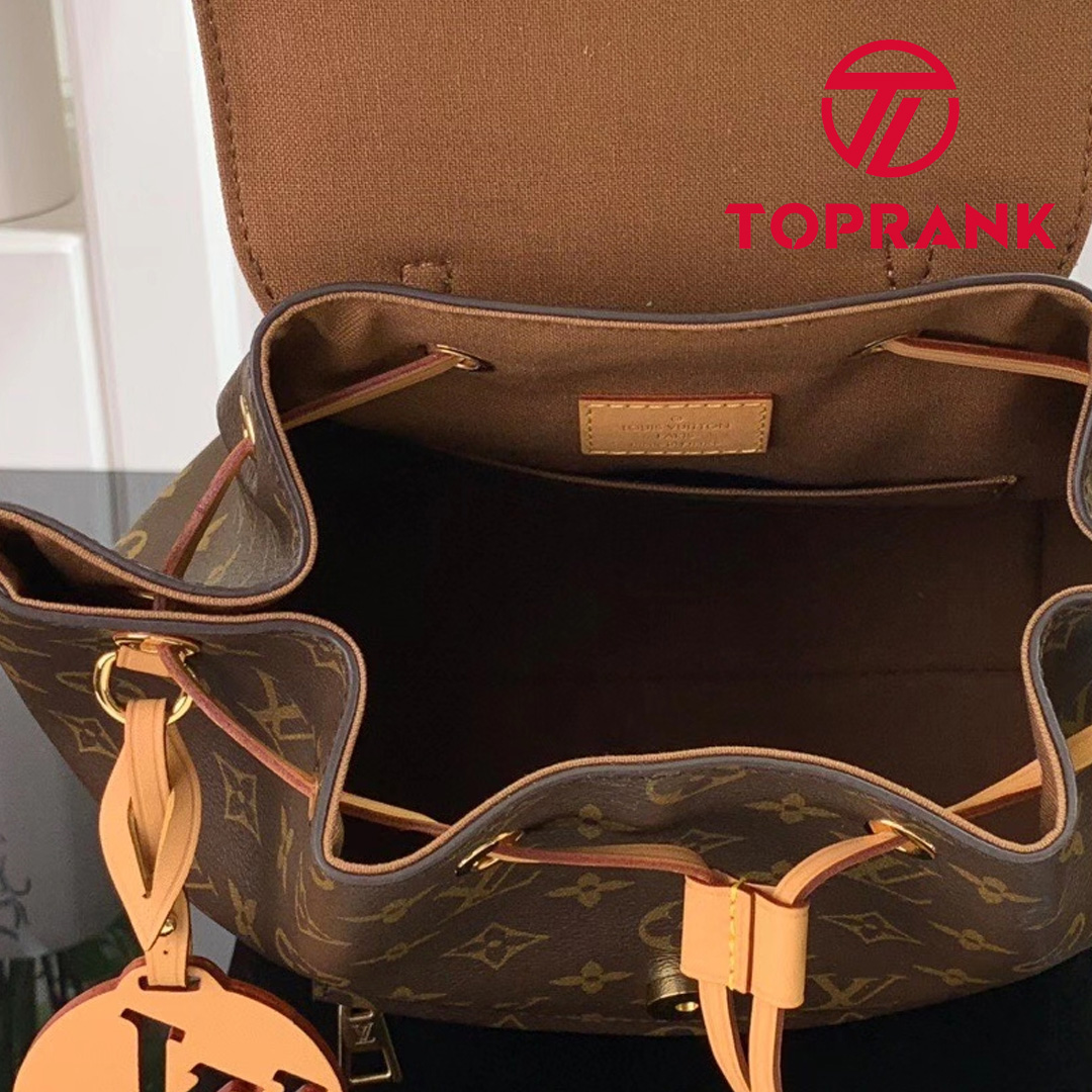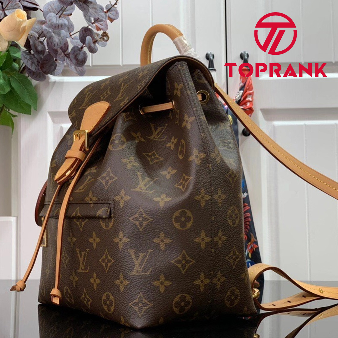 The Montsouris PM is an elegant new backpack made from Monogram canvas and cowhide leather, it closes with a archive Louis Vuitton buckle and leather drawstrings. Practical, with a roomy interior, it features an outside zipped pocket. The top handle and adjustable leather straps allow multiple carry options.