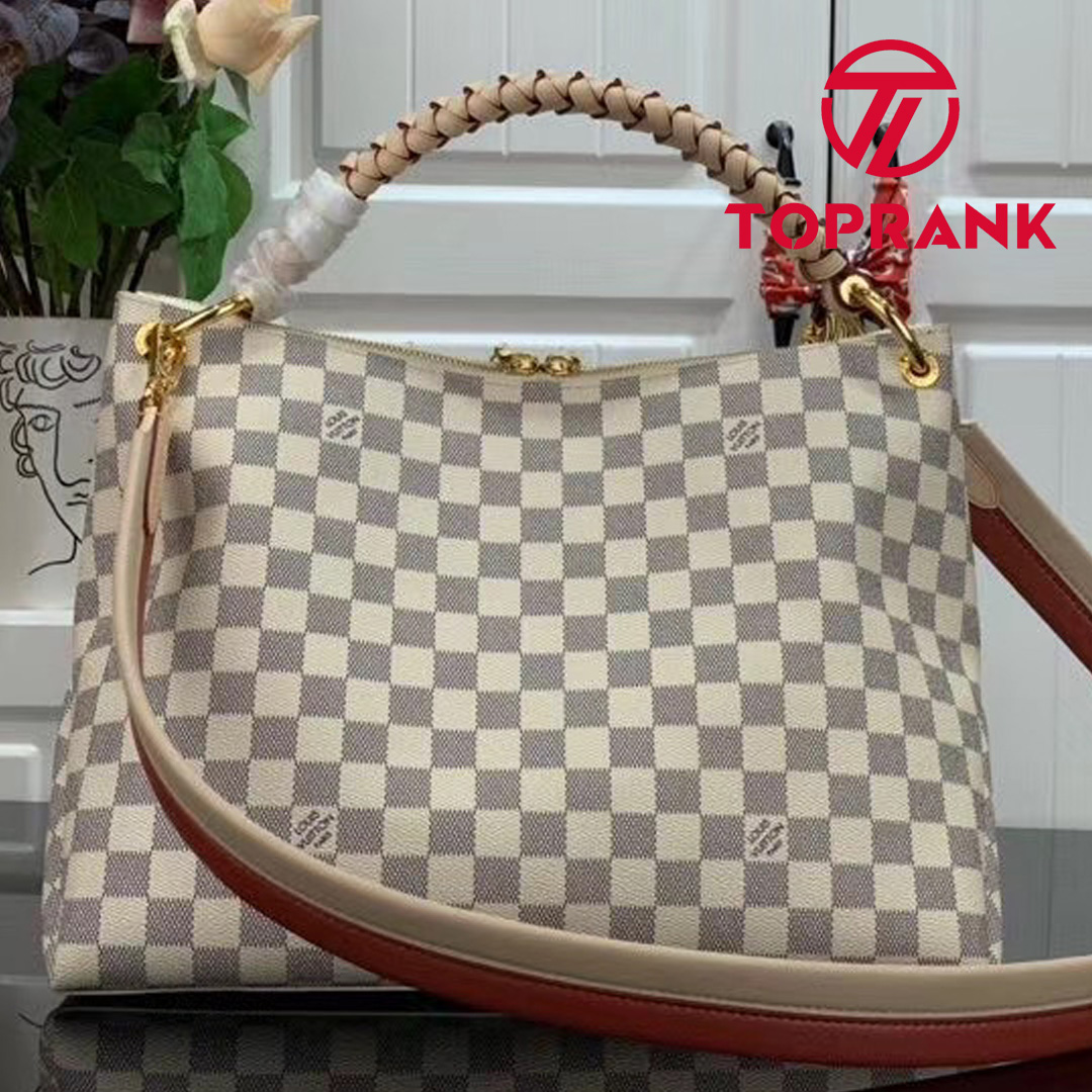 The Beaubourg Hobo MM bag in Damier Azur coated canvas sports an exquisite braided top handle for Summer 2020. The two-tone removable strap and hand-painted edge-dying on the top handle’s braided leather perfectly complement the bag’s sophisticated lines. It looks as good on the elbow as over the shoulder.