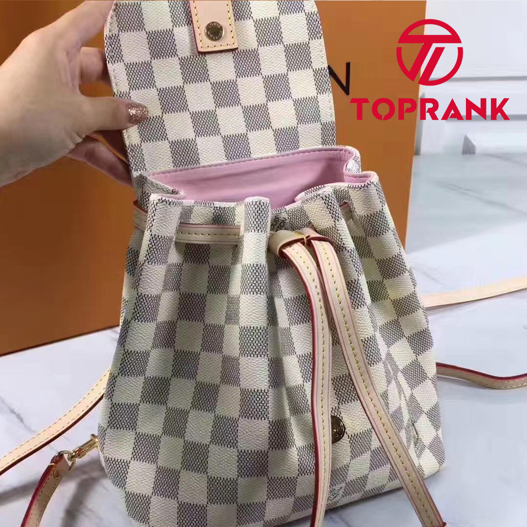 The Sperone backpack looks cool and summery in Damier Azur canvas. Light and easy to carry with its top handle and adjustable straps, this versatile bag opens wide to reveal a roomy interior with a bonded pink lining. It is trimmed with the House’s signature natural leather, which acquires an attractive patina over time.