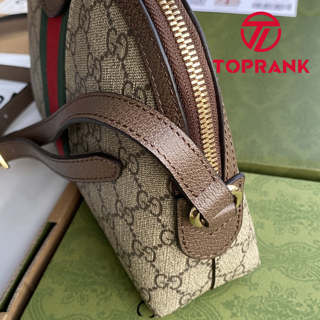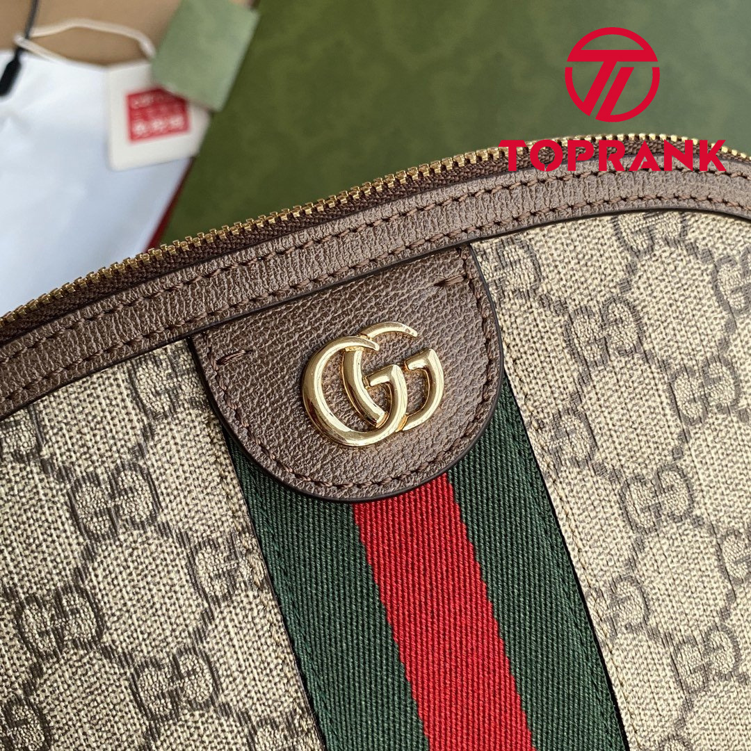 Crafted in GG Supreme canvas with inlaid Web stripe detail, the shoulder bag has a domed shape that recalls vintage designs. The Double G—an archival code—appears atop a leather tab detail and on the zipper pull.