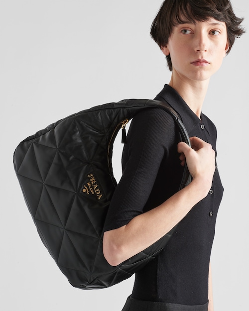 DetailAn unusual triangle motif creates three-dimensional plays on this nappa-leather bag, reinterpreting the iconic Prada shape. Defined by a versatile allure, the style is completed by a zipper fastening and signature enameled-metal triangle logo.Product code: 1BC183_2DF0_F0002_V_OOONappa-leather handlesMetal hardwareFront metallic logo letteringZipper closurePrada nylon logo lining with two pockets, one with zipperHeight: 27cmLength: 11.5cmWidth: 40cmMATERIALSLeatherFREE SHIPPING AND RETURNSFree shipping in 3-5 business days from order confirmation.Shipping status can be verified at any time by using the tracking number provided via e-mail. You can also access this information within MyAccount.You may return the products purchased within 30 days of delivery free of charge using the return label provided with your order.Personalized items are delivered within 30 days of order confirmation. Return for customized products is not available, except those differing from the style selected upon personalization.