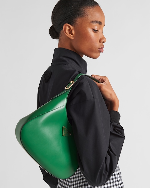 DetailA bold and refined silhouette characterizes this leather shoulder bag with fine details. The geometric construction contrasts with soft lines to create a modern and elegant yet sporty bag, an expression of the hybrid concept and part of the Prada's aesthetic code.Product code: 1BC179_2A3A_F0YFM_V_OOOAdjustable leather handleMetal hardwareEnameled metal triangle logo on the frontMagnetic claspNappa lining with patch pocketHeight: 17cmLength: 4.5cmWidth: 26cmMATERIALSLeatherFREE SHIPPING AND RETURNSFree shipping in 3-5 business days from order confirmation.Shipping status can be verified at any time by using the tracking number provided via e-mail. You can also access this information within MyAccount.You may return the products purchased within 30 days of delivery free of charge using the return label provided with your order.Personalized items are delivered within 30 days of order confirmation. Return for customized products is not available, except those differing from the style selected upon personalization.